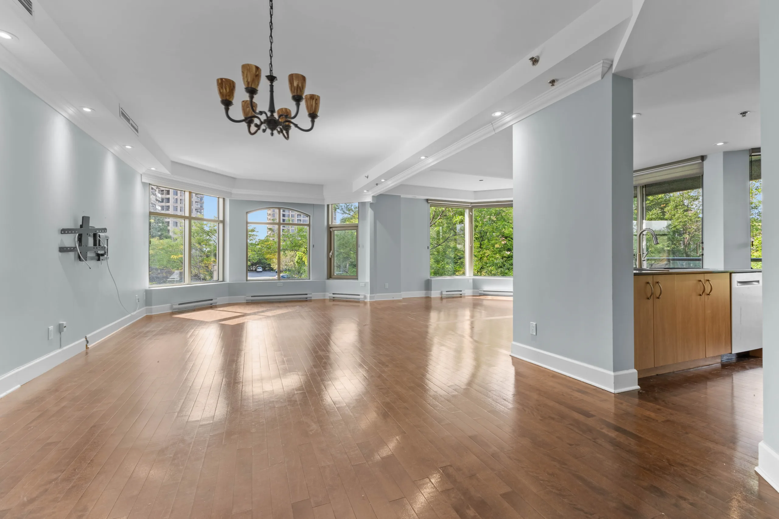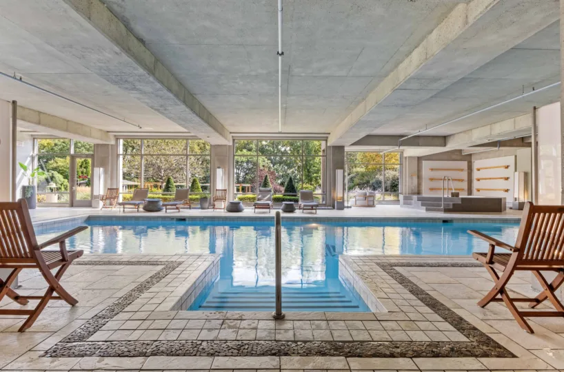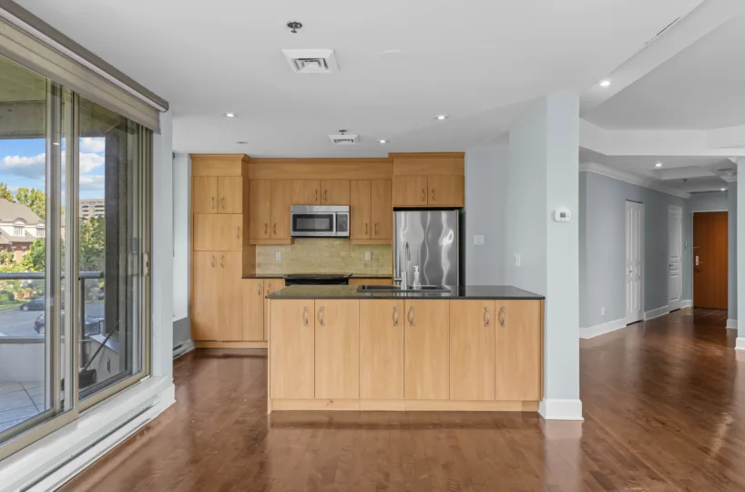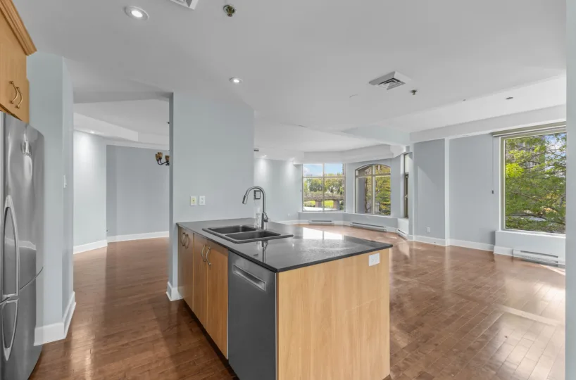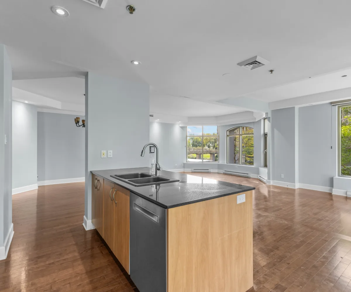 Welcome to Les Sommets 1 on the River, where luxury meets comfort. This corner unit, boasting 1,323 sq. ft. of living space, is bathed in natural light with its stunning southwest orientation. The open-concept design seamlessly connects the living room, dining room, and kitchen, creating an inviting and spacious environment perfect for relaxation or entertaining. Ideally situated by the river, this prestigious building offers a wealth of amenities, including a 24-hour doorman, indoor and outdoor swimming pools, a fitness center, and an elegant community room. This unit comes with 2 convenient tandem garage spaces.